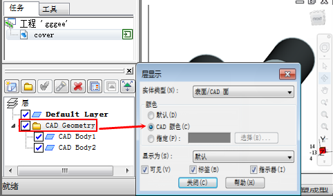 要选择 CAD 模型的原始颜色,请执行以下操作: