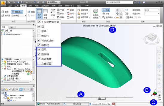 如果您特别关注如何最大化模型窗格,以便能够更清楚地查看模型细节,则可在“视图”选项卡中切换开关各种用户界面项。单击
