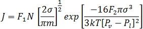 拟合经典成核 模型假定成核发生在聚合物的任何区域,且仅取决于物理发泡剂的平均浓度。利用此实施,可忽略剪切应力/拉伸应力对成核的影响。气泡成核在成核率 J 显示非零值后立即启动。树脂中气体浓度的计算基于树脂和气泡中气体的质量平衡。