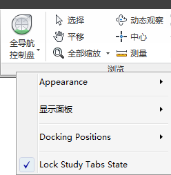 - 如果您打开了多个方案并在每个方案中执行类似任务,则当您从一个方案切换到下一个方案但打开了错误选项卡时,这一过程会非常令人沮丧且耗时。可以可通过选中“锁定方案选项卡状态”选项,确保所有方案都打开相同的选项卡。选中此选项后,无论您在从一个方案切换到下一个方案时打开的是哪个选项卡,它都是将在新方案中打开的选项卡。要选中或取消选中“锁定方案选项卡状态”选项,请在功能区的任意位置上单击鼠标右键。