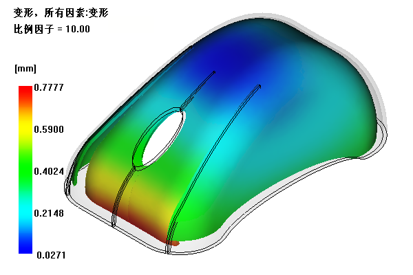 在本教程中,您将使用四型腔工具为计算机鼠标外壳设置和运行翘曲分析。方案已经提供。分析序列包括冷却、填充和保压。需要设置并运行整个序列。