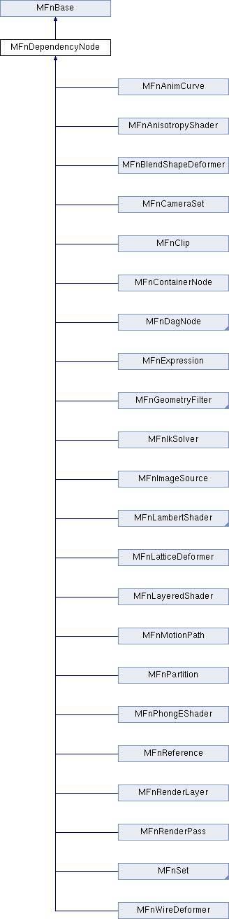 Inheritance diagram for MFnDependencyNode:Public Types | |