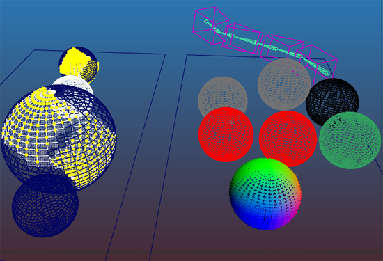 For each component type, the override can have one or more render items created depending on the display variations required (For MPxGeometryOverride, this is during updateRenderItems()). In the aforementioned vertex component example, there can be one item for displaying unselected vertices and one item for selected vertices. Each, for example, can have a different color, size and/or depth priority (if they overlap).