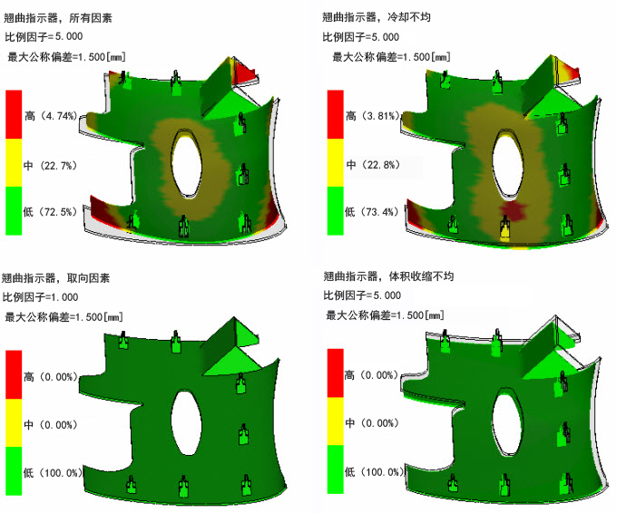 将它们与“所有因素”图进行对比。与所有因素图最相似的图形对翘曲具有最大的影响。在本例中,冷却不均图与所有因素图最相似。