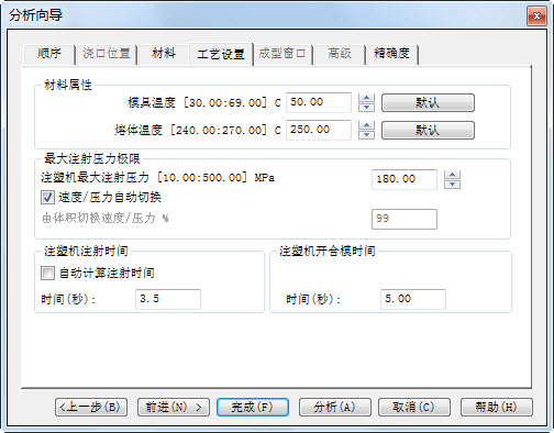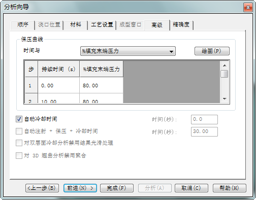 选择“高级”选项卡,然后查看“保压曲线”并确保“自动冷却时间”处于选中状态。