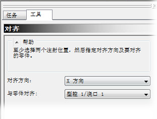 从“与零件对齐”字段中选择“型腔 1/浇口 1”。