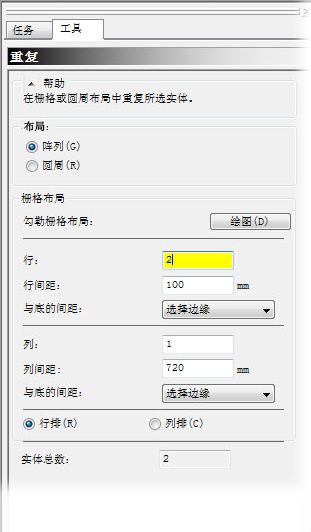 单击 (“几何”选项卡 > “布局”面板 > “布局重复”)。