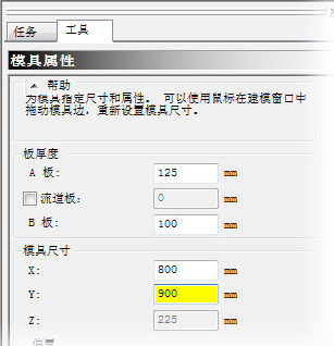 在本任务中,您将定义模具的尺寸。“A”板的厚度决定了主流道的长度。