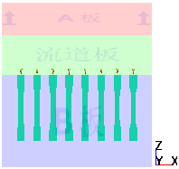 将在浇口和流道板与 A 板之间的平面间显示一条竖直流道。