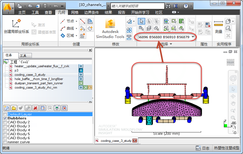 会为柱体单元指定识别标签“B”。当您选择柱体单元时,选择列表中会列出标识符(由字母 B 和其后面的数字组成)。