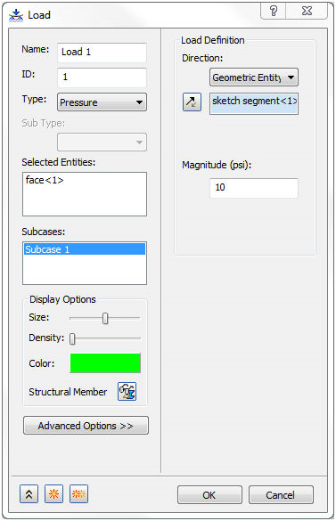 与“力”类似,可以使用 “几何实体”以使用几何来定义载荷方向。