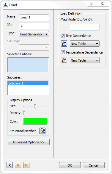 热生成可与时间和温度相关。如果选中了瞬态传热,则与时间相关;如果选中了非线性传热,则与温度相关。