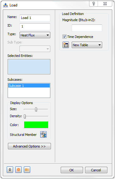 热通量可应用于曲线和曲面。当应用于曲线时,值输入将成为节点热输入。但是,载荷定义中的单位不会发生更改。