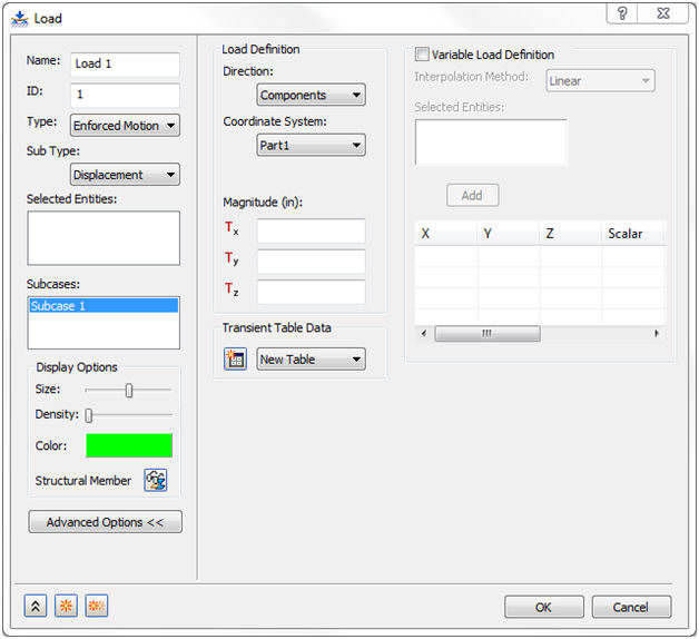 强制运动更像是作为载荷应用的约束。因此,应用“强制运动”类型的载荷时,应在同一几何实体上与应用的强制运动相同的方向上应用约束。