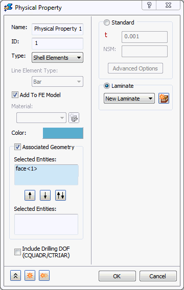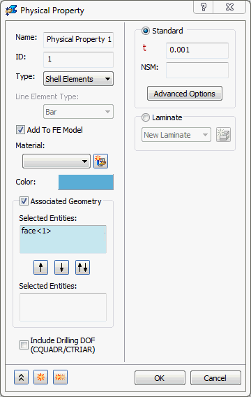 在“物理属性”窗体的“壳单元属性”下选中了“标准”或“层压板”选项时,此窗体处于活动状态。