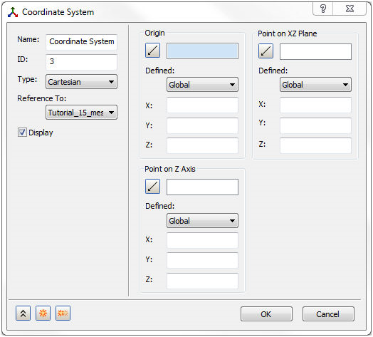 - 原点:定义坐标系原点的方法有多种。请注意,这些方法也适用于“Z 轴上的点”和“XZ 平面上的点”部分。