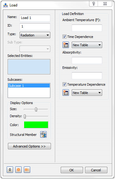 选择“非线性瞬态传热”作为分析类型时,环境温度可以与时间相关。在非线性传热分析中,只有“辐射率”可以与温度相关。