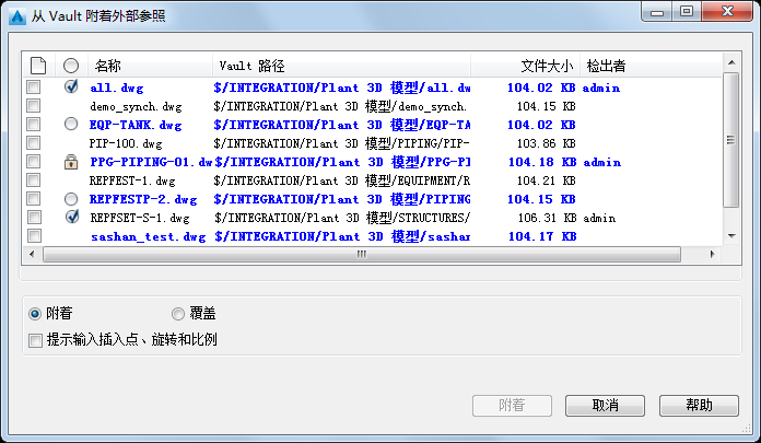 现在,您可以直接附着 Vault 中的文件。支持附着项目之外的非 DWG 文件以及非项目文件。