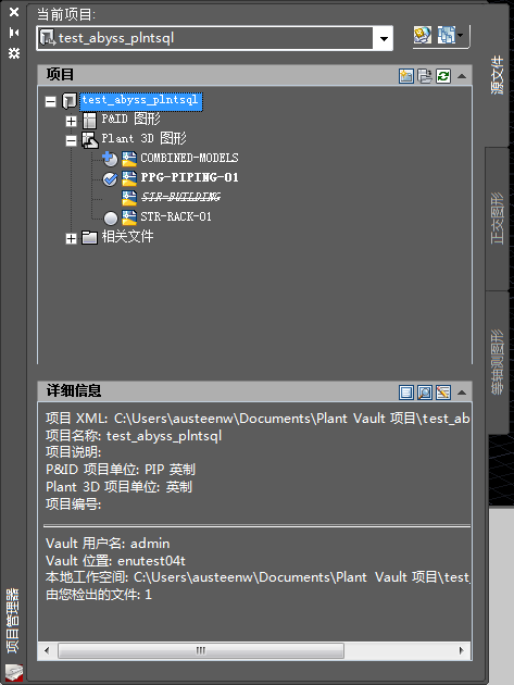 如上所示,将检出文件 combined-models。combined-models 参照(外部参照)str-rack-01、ppg-piping-01 和 str-building。因此,将下载所有文件。