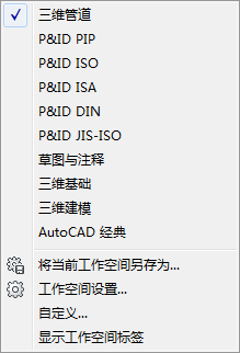 使用工作空间时,只显示与任务相关的菜单、工具栏、选项板和功能区。