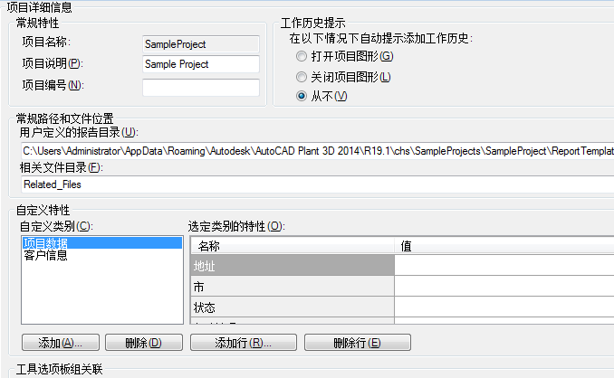 其他常规项目信息包括路径、工作历史提示设置、数据管理器缩放设置和工具选项板组关联。