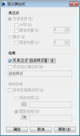 - 在“定义表达式”对话框中的“结果”下,单击“无表达式(自由样式值)”。单击“确定”。