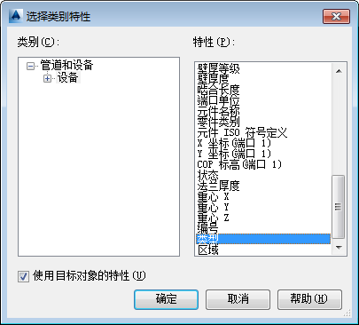 - 在“选择类别特性”对话框中,执行以下操作: