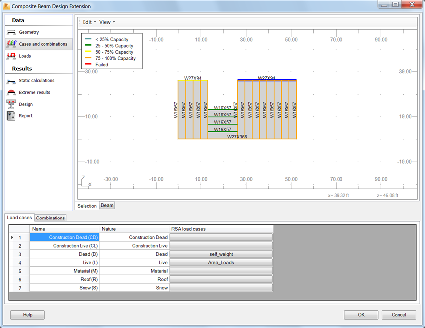 - On the Load cases tab, review which load cases from the model are assigned to individual ANSI/AISC 360-10 load natures. If needed, adjust these settings.