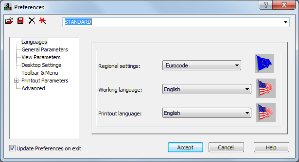 (Frame 2D Design). First, set the preferences to use the Eurocode Regional settings that are used throughout this tutorial. Once these preferences have been set they do not change during your use of the software unless specifically modified.