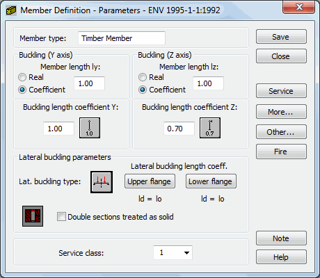 Use this option to define parameters of the timber member type for the code: Eurocode 5. There are two ways to access this option: