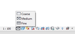 The View.DetailLevel property uses the ViewDetailLevel enumeration and corresponds to the detail level options available at the bottom of the Revit window as shown below.