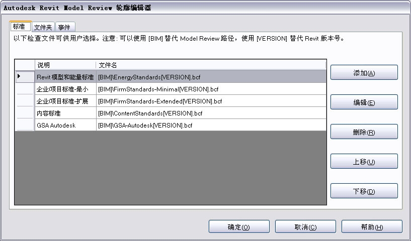 在 Model Review 的“配置文件编辑器”中,可以配置检查、说明、显示顺序以及检查文件位置(本地、网络)。