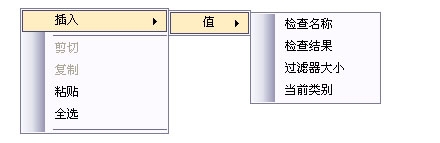 窗口上方是一个标准的所见即所得 HTML 编辑器。 下方正文部分用于输入文字、图像、超链接、表格和详细信息,以帮助用户找到给定检查失败的原因。 带 % 符号的区域是“动态文字”。 使用动态文字时,将在“结果浏览器”中将其替换为实际检查值。 在正文部分单击鼠标右键,然后从“插入”弹出型按钮中选择动态文字,即可添加动态文字: