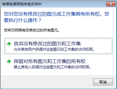 - 单击“保留对所有图元和工作集的所有权”,以保留对借用的图元和拥有的工作集的所有权。 您将丢失已执行的修改。