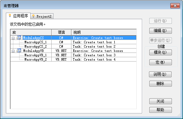 文档级宏工具是为特定项目编写的,且保存在 Revit 项目中。
