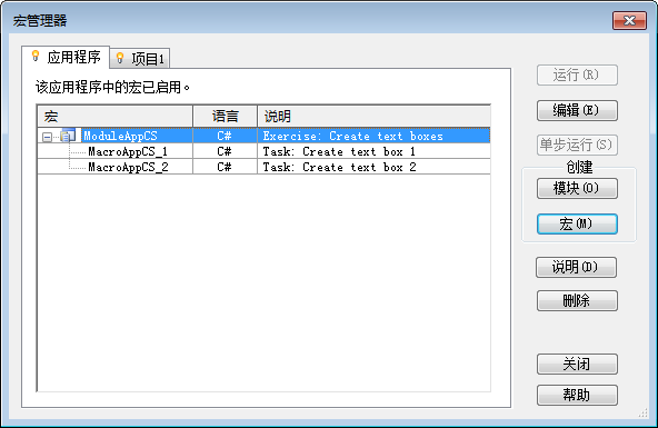 您可以使用这些选项卡添加、修改、构建和删除模块及宏。