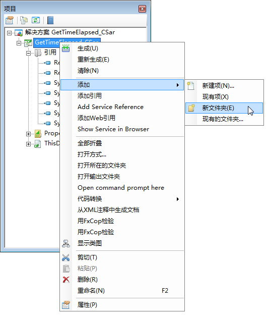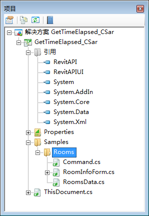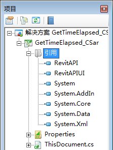 在本例中,GetTimeElapsed_CSharp 的刷新的 IDE 项目浏览器包含: