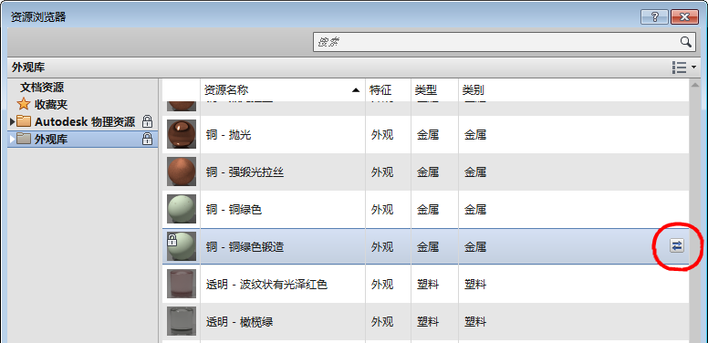 可以从“资源浏览器”中选择并替换现有的资源。 材料将采用具有新资源的属性。