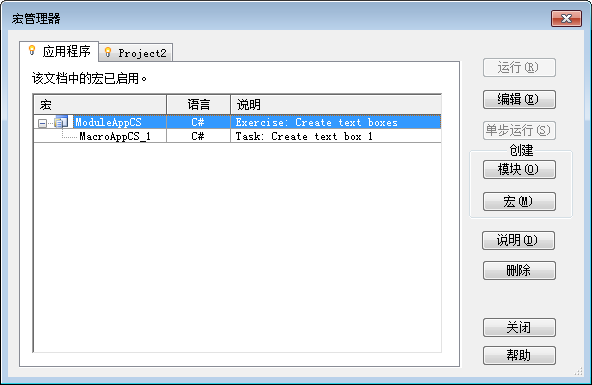- 单击“说明”,可完整地查看选定模块或宏的说明。 当宏管理器的“说明”列被截断时,此操作非常有用。
