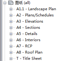将图纸添加到项目中时,这些图纸会列在项目浏览器中的“图纸(全部)”下。