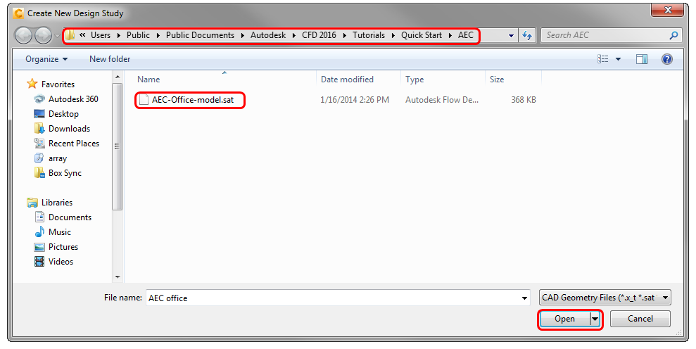 Navigate to C:\Users\Public\Public Documents\Autodesk\CFD 2016 Flex\Tutorials\Quick Start\AEC.