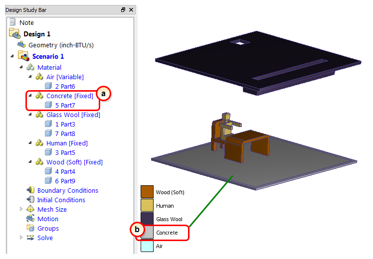 a. On the Design Study bar, confirm the material assignment for the Concrete part.