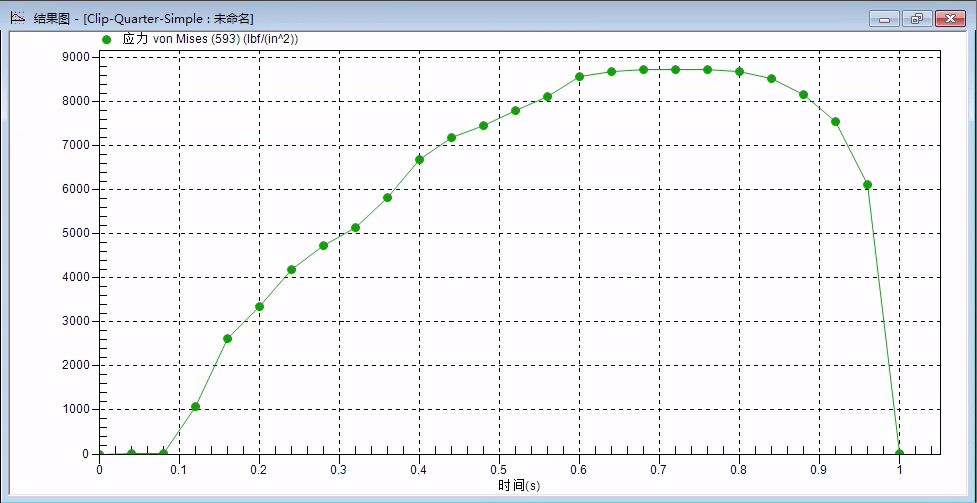 请注意出现最大应力的时间步。在这种情况下,是时间步 18(0.72 秒)。