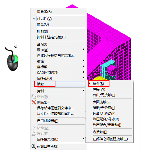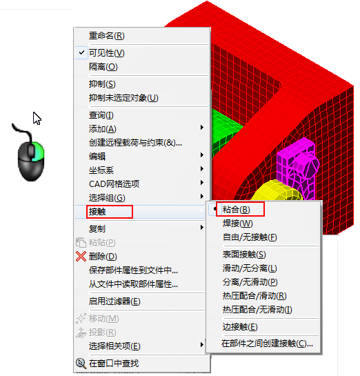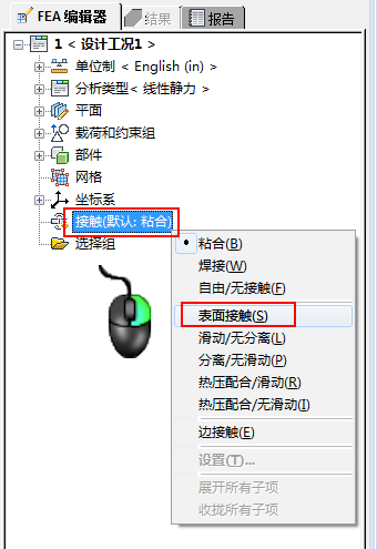 - 若要更改默认接触类型,请在浏览器中的“接触”上单击鼠标右键,然后选择“表面接触”。