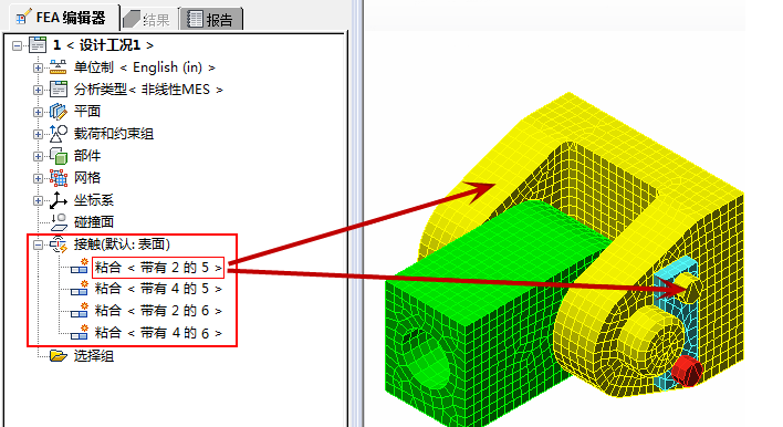 - 在其他螺钉与连接叉之间指定“粘合”接触。
