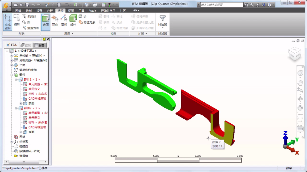 弹簧夹模型作为 STEP 文件(通用 CAD 格式)提供。在本教程的此部分中,我们将在 Autodesk® Simulation Mechanical 中打开 STEP 文件,并选择分析类型。