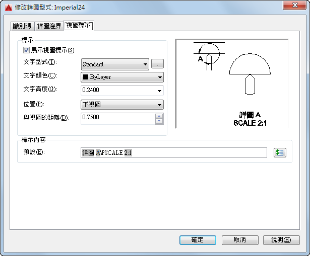 設定標示可見性、標示文字的性質、標示位置和詳圖標示的內容。