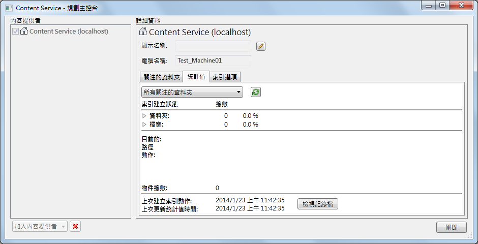 檢視已建立索引的資料夾百分比,以及這些資料夾中已建立索引的檔案百分比。