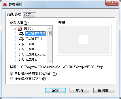 顯示所選參考的檔案位置。如果是一個圖塊,將不會顯示任何路徑。
