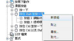 在滑鼠按鈕部份按一下右鍵。按一下「新按鈕」。